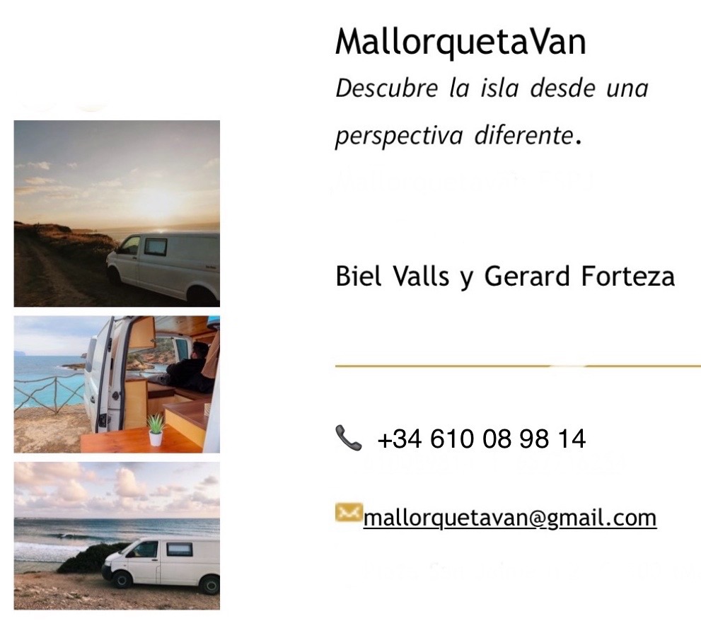 © 2022 Todos los derechos reservados. Creado y diseñado por MALLORQUETAVAN S.L B70953823 Mallorca(Islas Baleares)